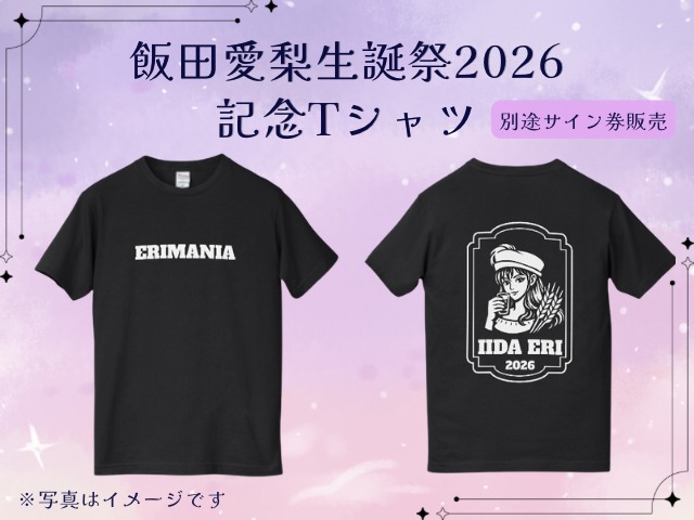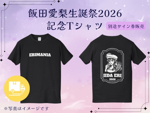 飯田愛梨生誕祭2026オリジナルTシャツです! ぜひおむかえください♪ ・サイズは画像2枚目をご確認ください ・サイン入れをご希望の方は別途サイン券のご購入をお願いいたします。 ※画像はイメージです